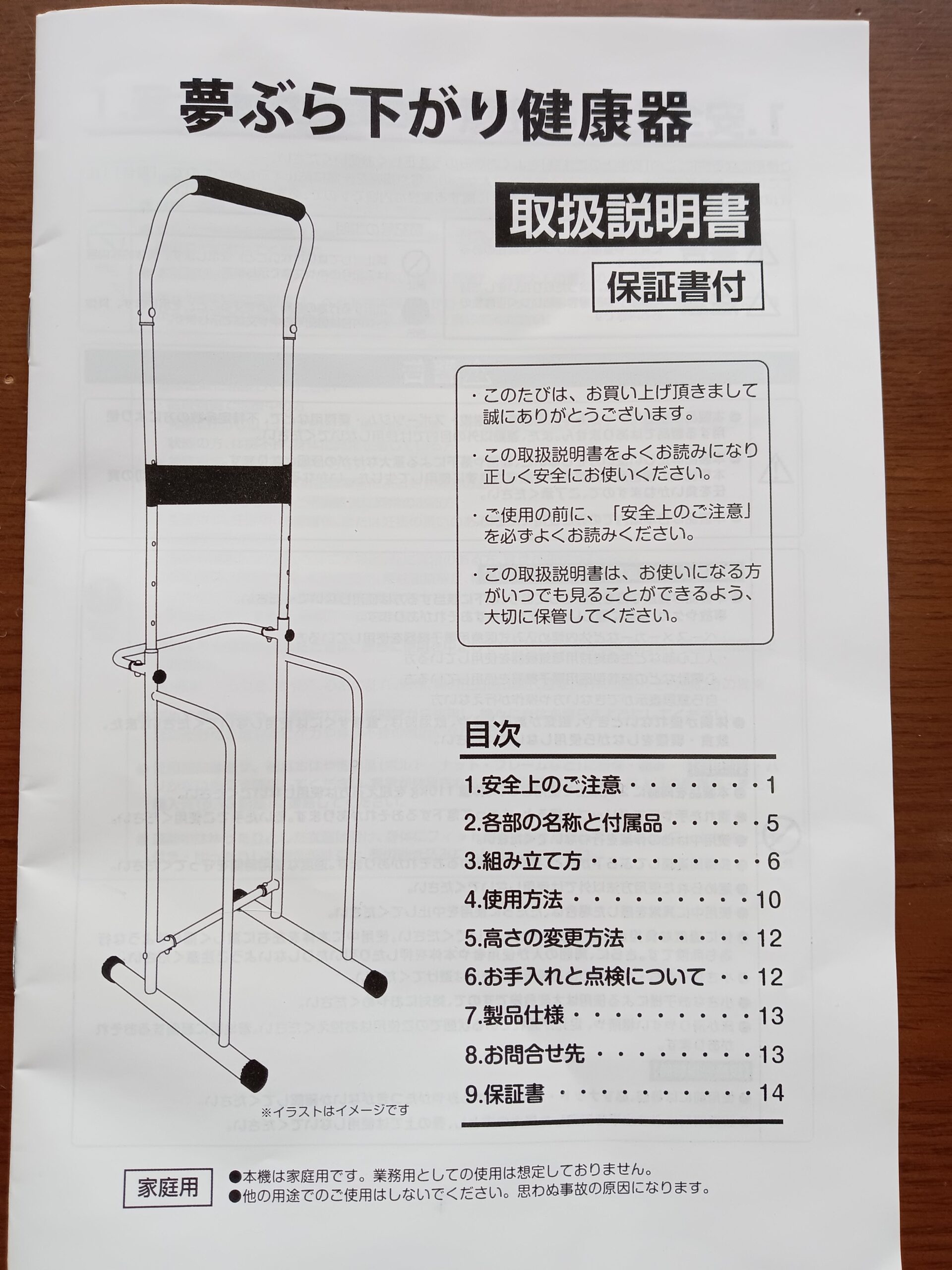 年末に購入していたぶら下がり健康器の組み立てやっと完了しました。