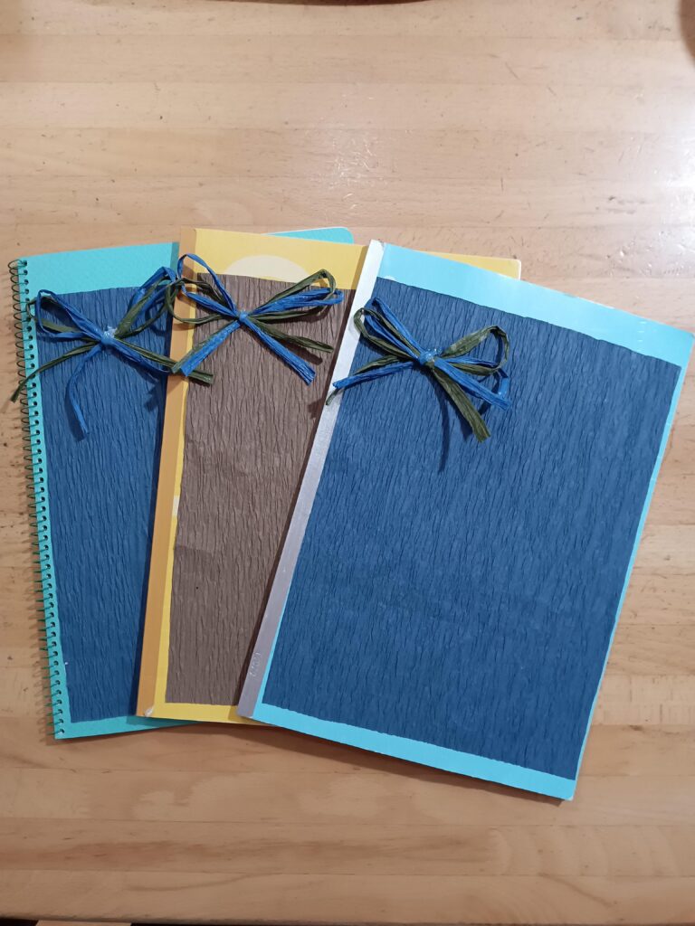 書きたいことや調べたことを日々書き留めておくのに「取材ノート」が必要だと思いつき、子供達が置いて行った学生時代の使い残しのノートをデコレイトしてみました。