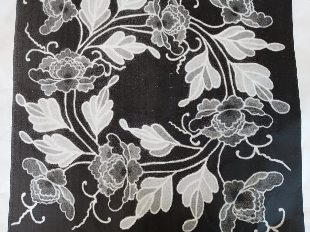 糊で描いた部分は地塗りをすると白く残ります。模様の輪郭の中に色差したところを糊伏せすることで地塗りをしても色を差したところには地の色が入らず綺麗に浮かび上がります。