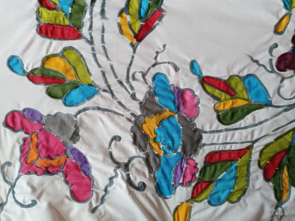 糊撫せとは色を入れた上に糊を置くことで、その部分は地色が入らないようにすることです。