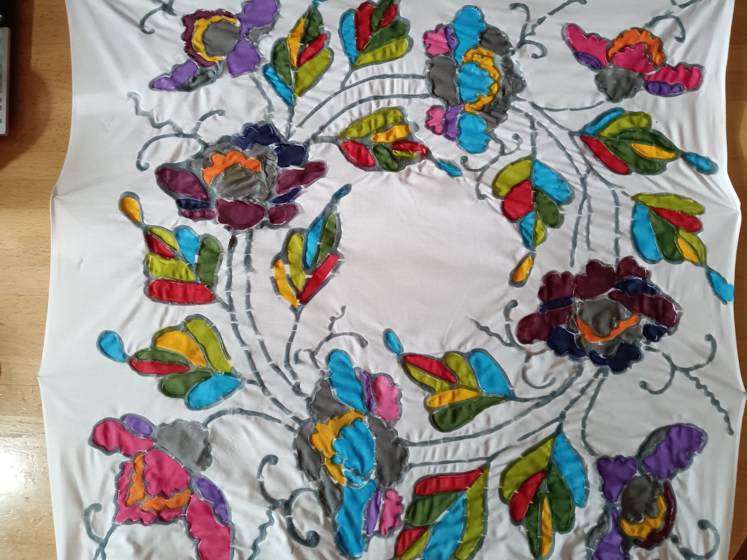 糊撫せとは色を入れた上に糊を置くことで、その部分は地色が入らないようにすることです。
