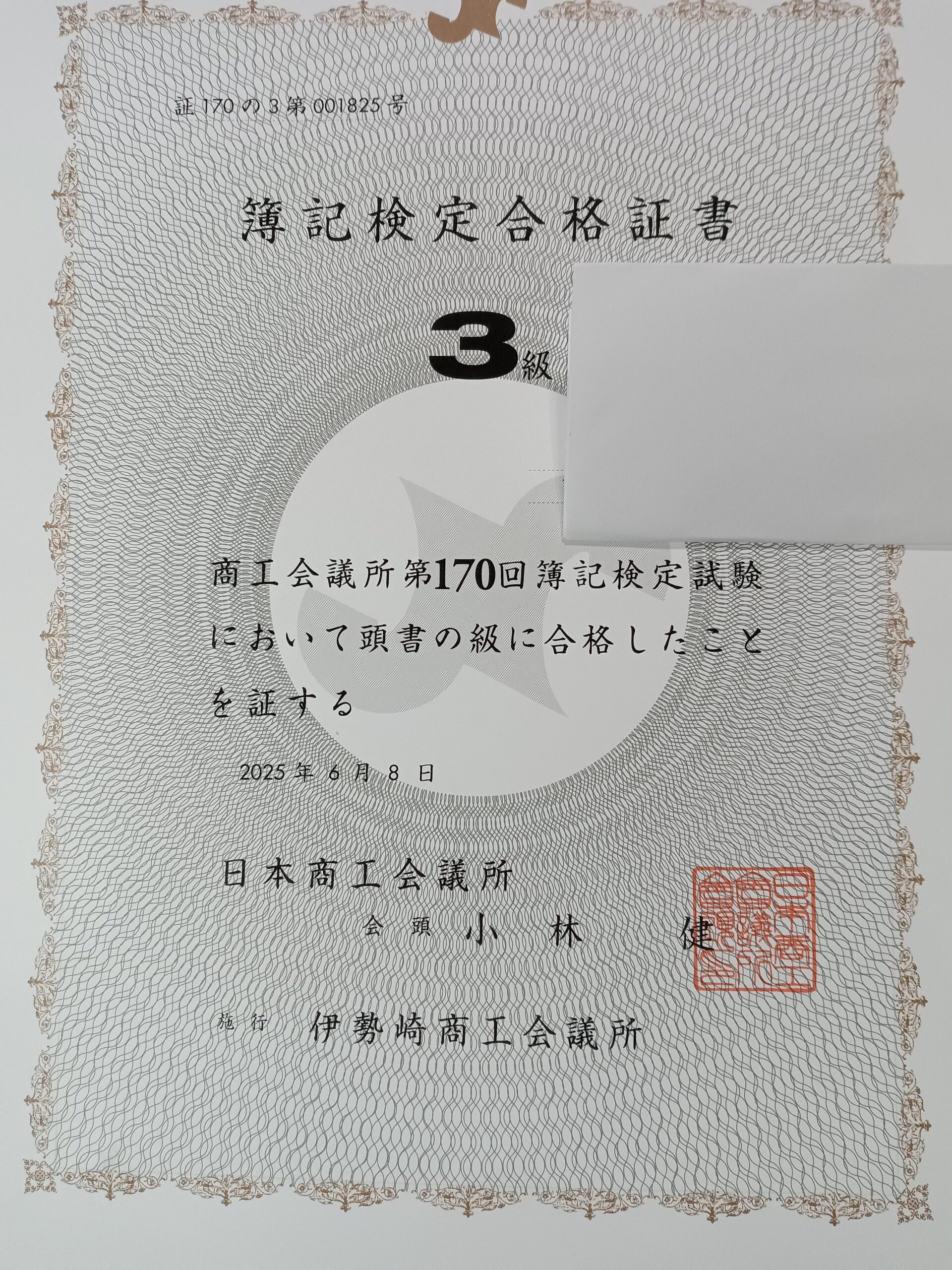 そうこうしているうちに職員の移動などで仕事が忙しくなり、娘の結婚、出産と続くなどで生活の慌ただしさも重なり、いつしか簿記3級受験への気持ちはフェードアウト。「通信教育や本やYouTubeで学んだことは活かせる、無駄では無かった」と自分自身に言い訳。これでこの時は簿記3級資格を取ることは「挫折」したのでした💦